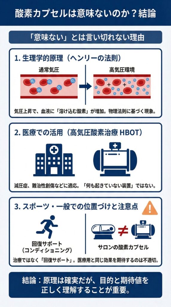 酸素カプセルは、魔法でもなければ、完全に無意味なものでもありません。