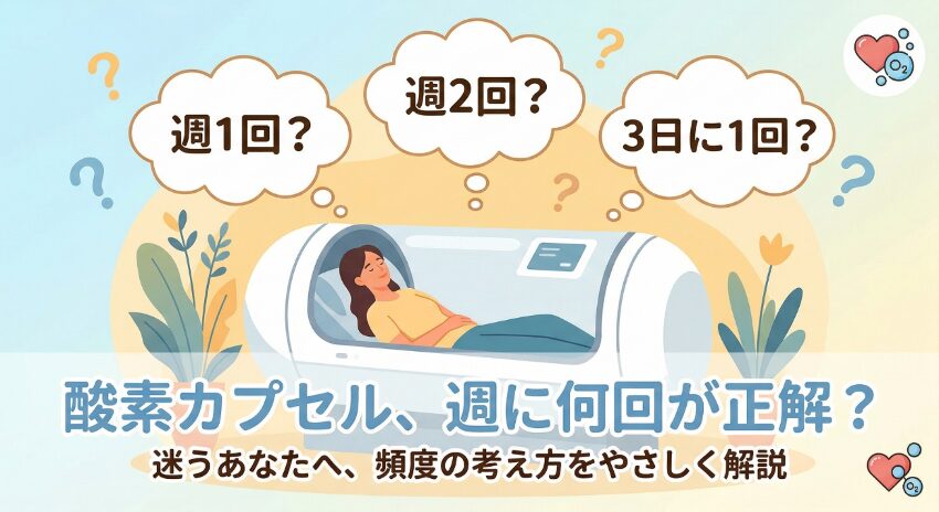 そこでこの記事では、一般向けの酸素カプセルと病院で行う高気圧酸素治療の違いを整理しながら、初心者の方にもわかるように、頻度の考え方をやさしく解説します。毎日入ってもいいのか、1回何分が目安なのか、やりすぎを防ぐにはどう考えればいいのかまで順番に整理していくので、読み終えるころには、自分に合った使い方を判断しやすくなるはずです。